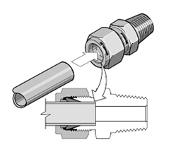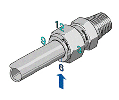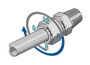 6.在卡套螺母擰緊一又四分之一轉,它前進了1/16inch(1.52mm),接頭完成了密封,抱緊管子的作用。